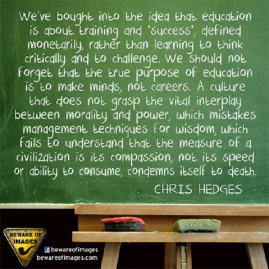 To suggest that education is the antidote is not to ignore the palpable ability of Man to use the whole of his brain and his intuition to come to a genuine and therefore useful point of cognition from whence he can begin to figure out his route of escape (Latin cognitio(n-), from cognoscere ‘get to know.’)