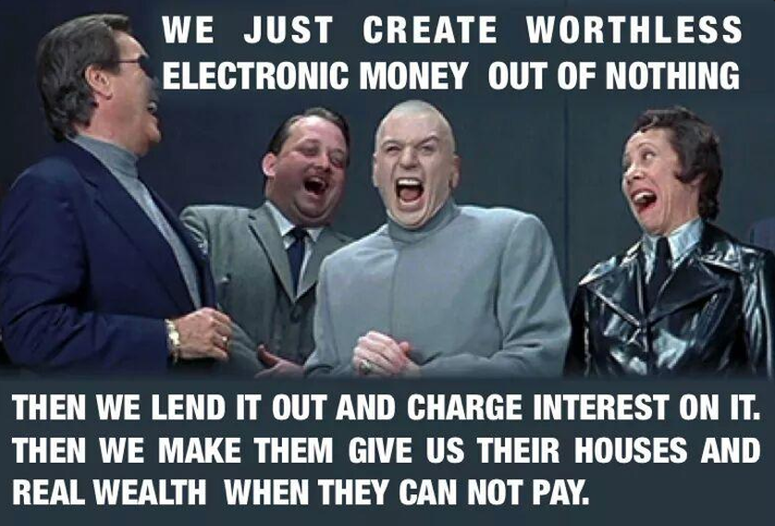 However, at no point in the film is the biggest fraud revealed: namely that the banks do not loan any moneys and then charge massive interest rates on the imaginary loans.