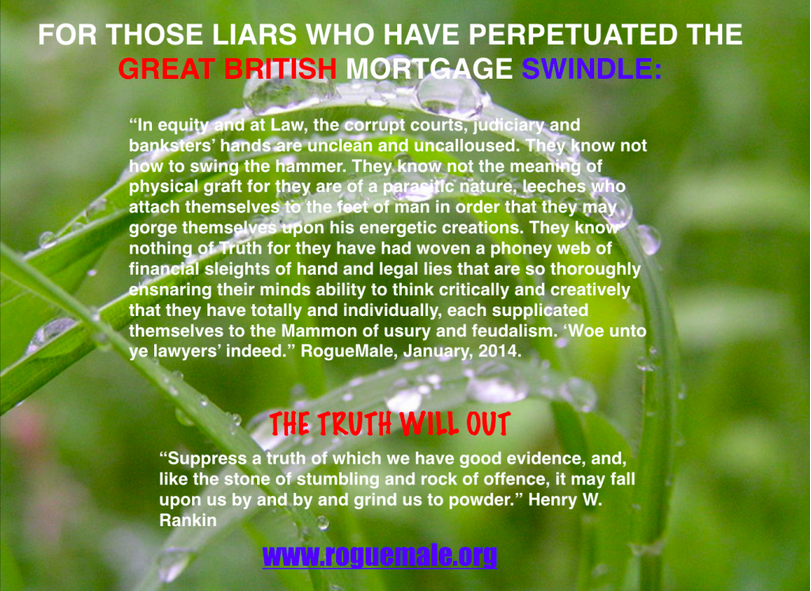 FOOTNOTE: Blessings to all and special thanks to the inspiration of John W and Michael of Bernicia and all those brave souls who have stood up in the name of truth to the most pernicious of deceits, The Great British Mortgage Swindle.