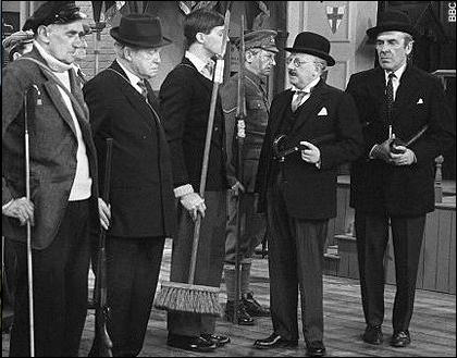 When not in army fatigues, he and Wilson (above) sported the classic tie and collar, suit and bowler hat uniform associated with the stereotype. The symbolic nature of the bowler hat is not to be underestimated: advertising, marketing and promotions of all types rely upon the use of symbols, such is the nature of the human mind which is hugely influenced by those that exist all around us.