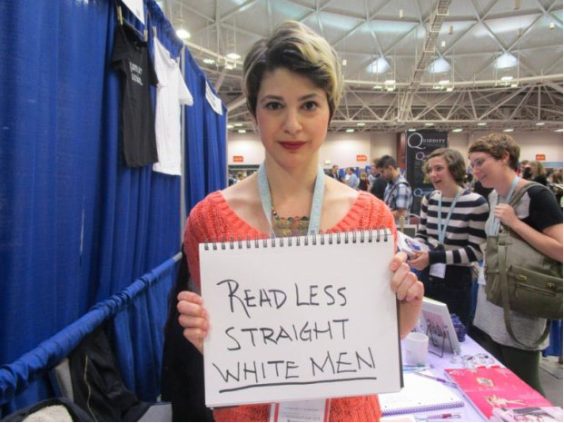The feminist with the placard is, as far as RM can see, a fuckwit. What on earth does she purport to be doing? Encouraging men to think less? To feel more? Moreover, who in their right mind is likely to listen to her? What does she mean by ‘straight white men’? Is she mentally ill? In any event, she is farting into the wind and her smug expression belies a head that will one day explode like a pumpkin lantern that has a stick of dynamite burning inside it. Is she causing harm? Only to those who are foolish enough to take her seriously.