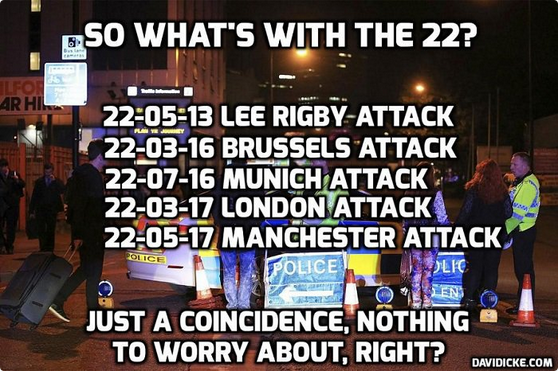 The date was 22 May, 2017 and, purportedly, there were 22 victims. Notice the number 22, it’s a recurring digit.