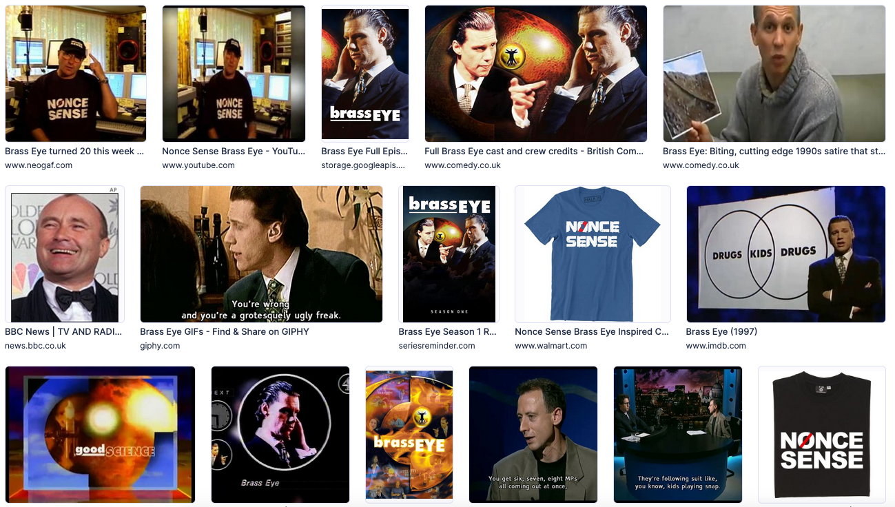 Readers of a certain vintage may well be reminded of Brass Eye’s satirical and visionary episode in which the expression ‘Nonce Sense’ is used to fool Phil Collins, Gary Lineker and Bernard Manning into taking part in what they wrongly believe is a documentary exposing paedophiles: