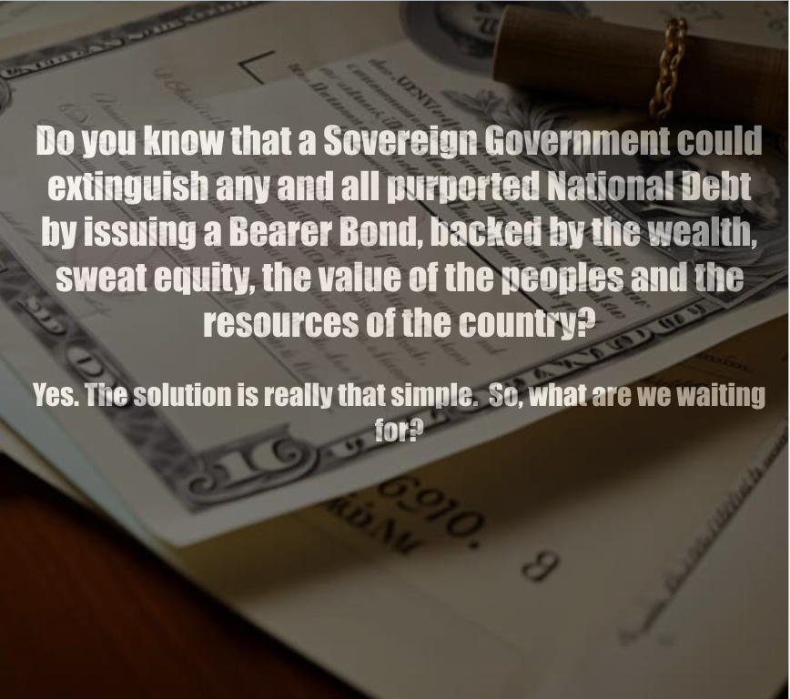As previously written, there is no National Debt and each and every fake loan could easily be discharged by any President or Prime Minister who had the cognisance of how the financial system is one huge swindle: