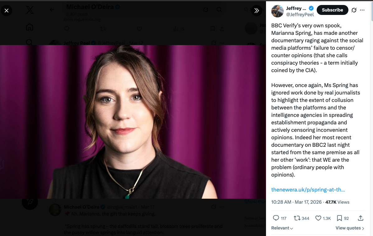 However, there is another Spring who operates in marked contrast to her seasonal nom de plume. Marianna Spring’s output is of a withering quality that reflects the fatal lack of critical thinking which is ever more prevalent at the BBC as it sinks further into the swamp of its own feminised disinformation.