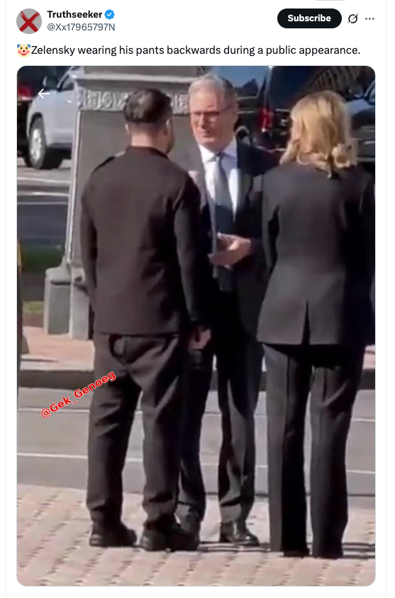 For Starmer, it is his relationship with Lord ‘Back’ Ali, the coke-on-the-train episode – which curiously coincided with Zelensky greeting him with his trousers on back-to-front (left)- his apparent connections to a trio of Ukrainian rent boys and any and all of the Zio-donations he has happily trousered (pun intended).