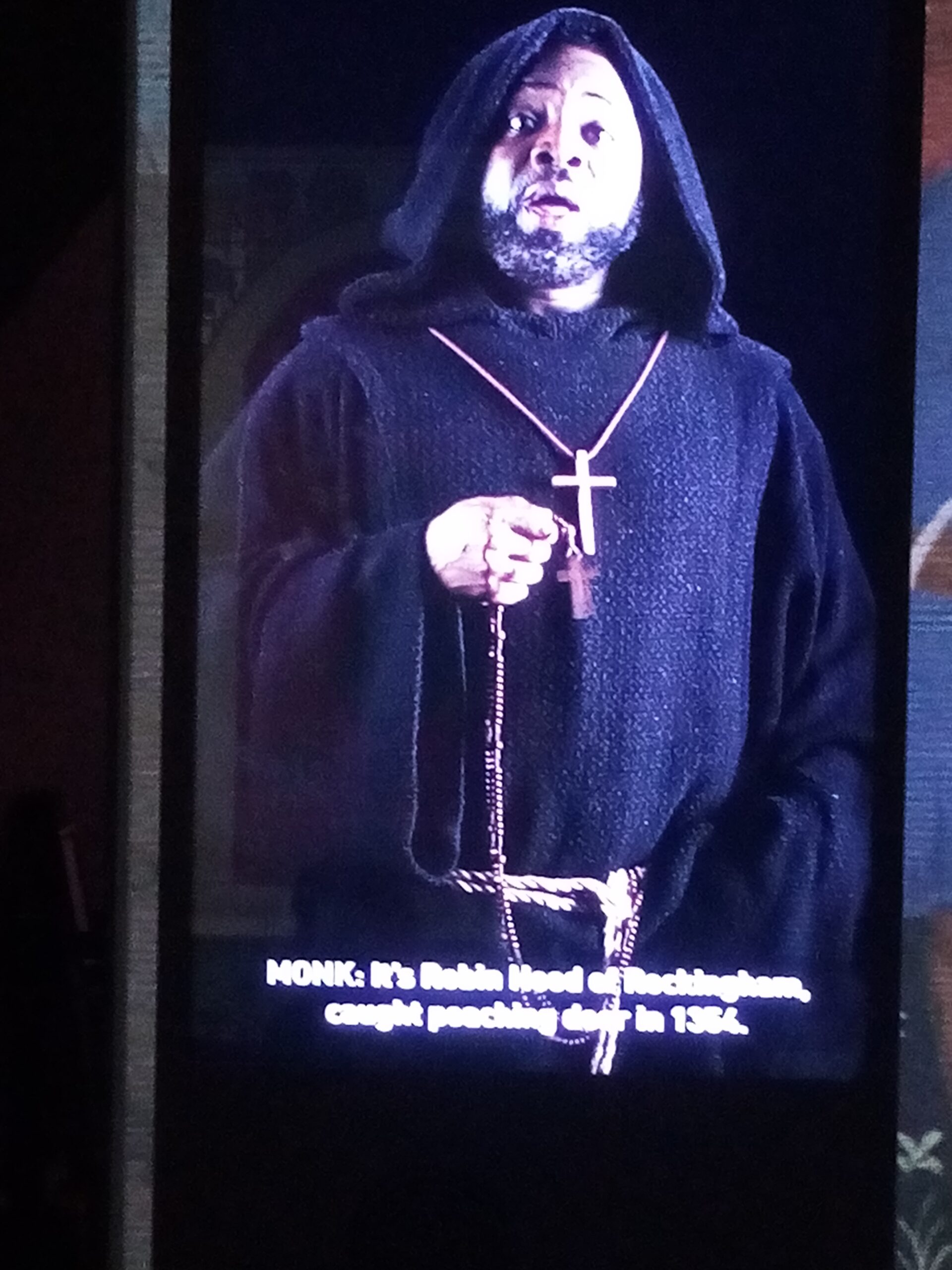 with one talking head being an African-descended actor who plays the role of a priest (left). The street scenes are depicted as being populated by brown-skinned characters and this is manifestly a false representation, designed for reasons of ‘diversity’ – the fabricated notion that there have always been ethnic minorities living on these isles. It is a nonsense and one which I will not even bother commenting upon further.