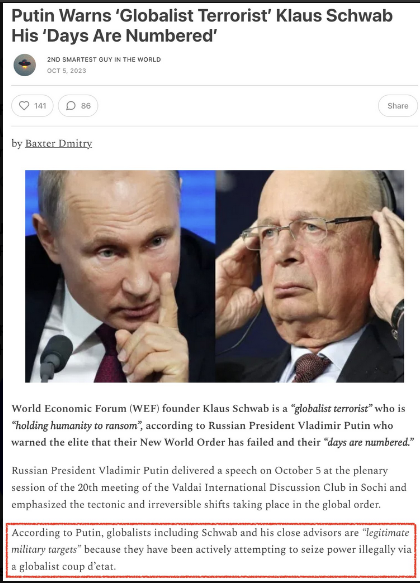 Off the top of my head, and in no particular order, Lord Rothschild, Klaus Schwab, George Soros, the head of WHO, Bill Gates, any and all of the underling poli-puppets like Sunak, Dan Andrews, Macron, Merkel, Hilary Clinton and any other liar like the stooge Noah Harari might reasonably be deemed legitimate targets for assassination on the basis of the manifest threats they pose to the lives of millions across this realm.