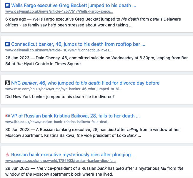 Could it be that assassinations are carried out exclusively by the Deep State, usually against figures who may have ‘gone rogue’ or, by bankers whose deaths are invariably of a ritualistic type? After all the ‘Banker Jumps to his death’ is a common enough headline: