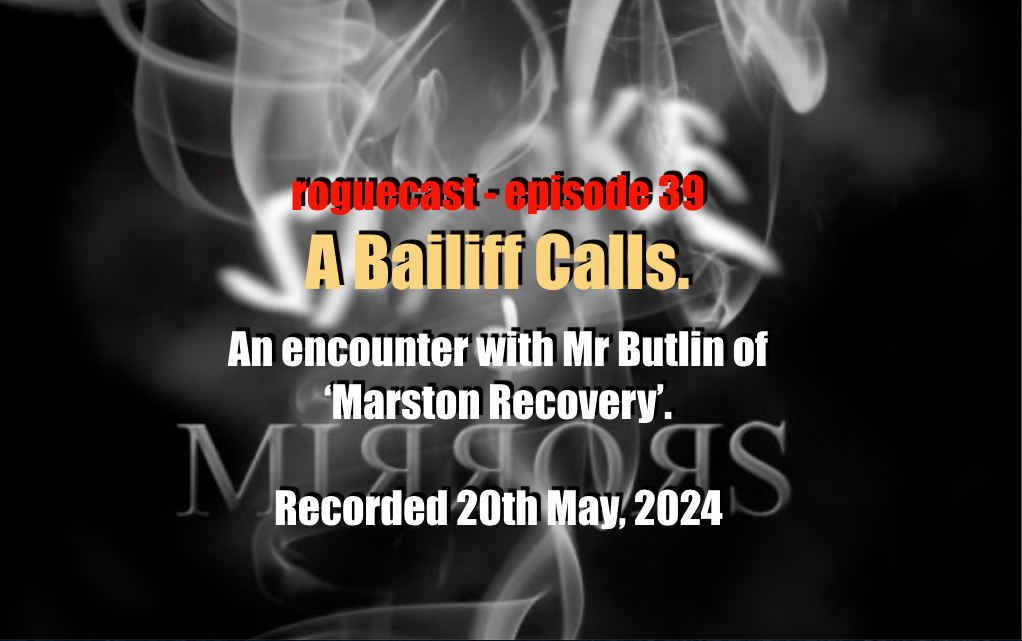 An Encounter with Mr Butlin, an agent of ‘Marston Recovery’. Fraud Alert: this Rogue Cast features an attempt by a Marston Group Bailiff (debt collector) to levy a false fine using a fake Warrant of Control. Before I go any further, let’s remind ourselves of what the constitutional law of these lands says about the subject of today’s RogueCast: Bill of Rights 1689: Grants of Forfeitures. “That all Grants and Promises of Fines and Forfeitures of particular persons before Conviction are illegal and void” Could it be plainer? “Before conviction” means that no fine or forfeit can be imposed […]