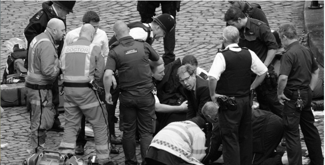 - The curious actions of Tobias Ellwood, an American Tory MP with background work in the secret services and how the by-standing paramedics and doctors allowed him to perform the CPR resuscitation on the policeman (who was possibly killed via some bizarre ritual murder) rather than themselves and the inexplicable smearing of his forehead with a streak of blood thereafter.