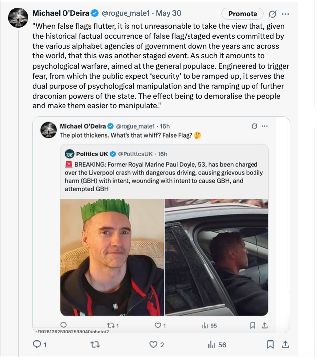 It is not unreasonable to take the view that, given the historical factual occurrences of false flag/staged events committed by the varous alphabet agencies of government down the years and across the world, this was another staged event. Engineered to trigger fear, from which the public expect, or even call for ‘security’ to be ramped up, it serves the dual purpose of psychological manipulation and the ramping up of further draconian powers of the state. The effect being to demoralise the people thus making them feel more helpless and leaving them easier to manipulate.
