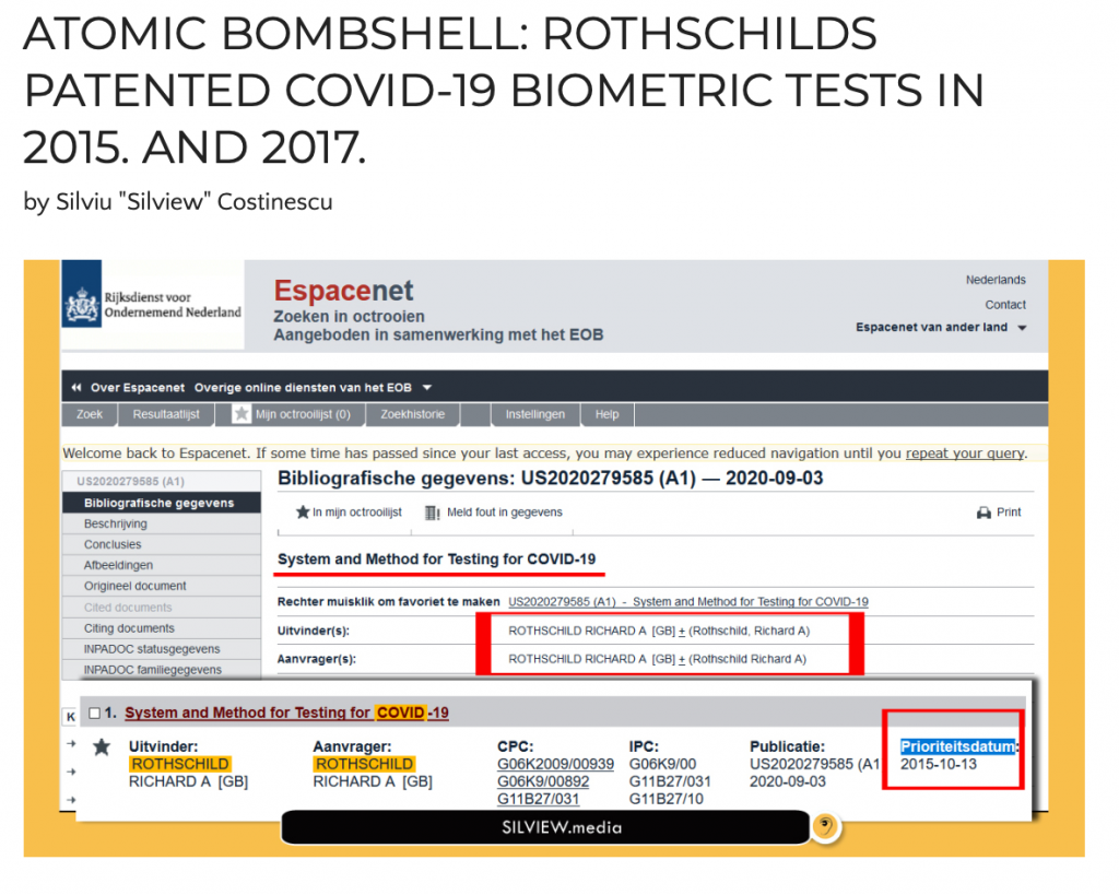 Inevitably, the House of Rothschild has it extensive tentacles all over it. From their total dominance of the financial systems to their apparent patenting of the Covid1984 testing kits: