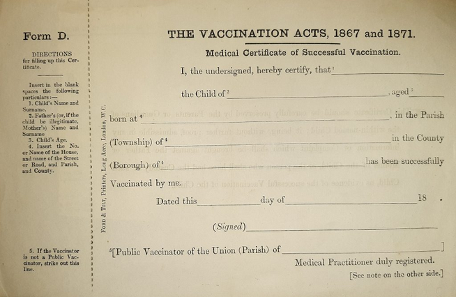 Quite rightly, there has been a lot of blowback, particularly as this appears to be an attempt to leverage a ‘vax passport’ on the populace. This is not an unprecedented move – jib-jab certificates were rolled out by the UK government and authorities in the nineteenth century: