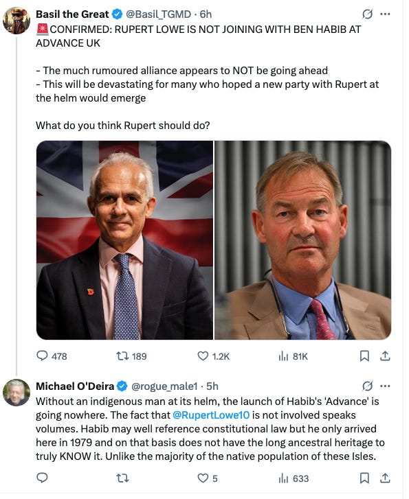 In this discourse, I ramble over the uneven terrain of the current state of the Isles of Britain – from the doomed attempt of Ben Habib to label himself the “Leader in Waiting” of his new political vehicle to the pathetic events of Glastonbury, the absolute state of the music industry and to the inevitable rise of the Men of the Isles of Britain, as exemplified by Rupert Lowe’s new “Restore Britain”.