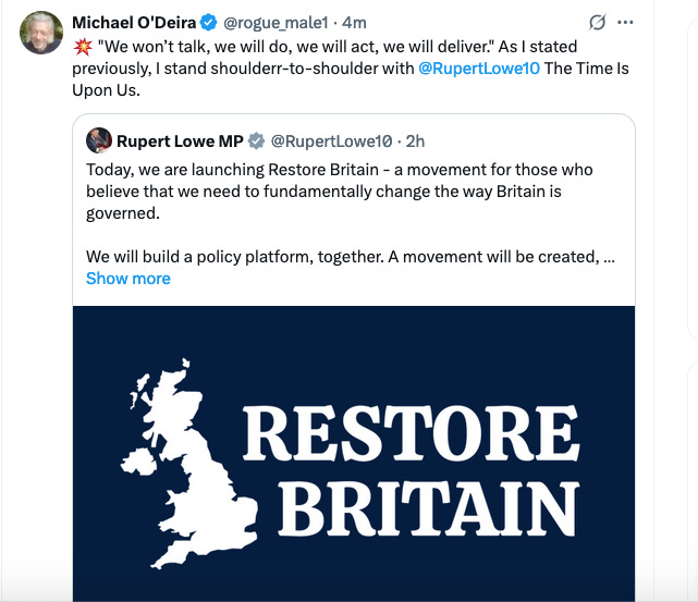 In the light of this and, perhaps to the surprise of my readers and listeners, I am standing shoulder-to-shoulder with Rupert Lowe and his Reform Britain movement on the simple basis that I have had enough of the defeatist bullshit and it is time for a resurgence. Doubtless, there will be many who share my position. In any event, I always practice what I preach and so, with a smile on my face and a cheerful heart, I will continue to do just that.